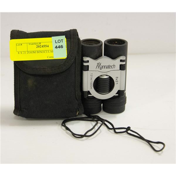 8 X 21 ZOOM BINOCULARS IN SOFT CASE