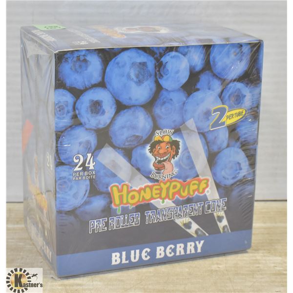 BOX WITH 24 PACKS OF BLUEBERRY ROLLING PAPERS