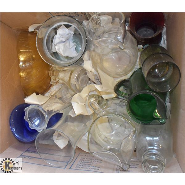 VINTAGE GLASSWARE- BOX LOT OF 14 PIECES