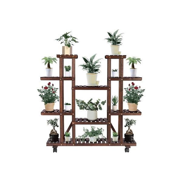 PLANT STAND WITH 17 SECTIONS FOR POTS, BROWN, ALL PARTS AND MANUAL CONFIRMED, IN ORIGINAL BOX, AMZ SES