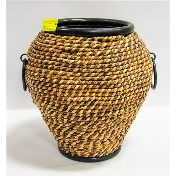 WOVEN BASKET WITH HANDLES, 13" TALL