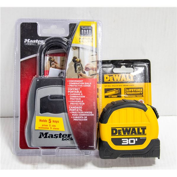 BOX HOLDS 5 KEYS W/NEW DEWALT TAPE MEASURE 30"