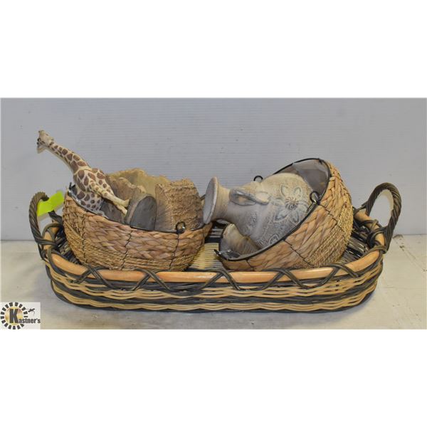 BASKET, GIRAFFE DECOR PC, MINI CANDLE HOLDER + WOOD THEMED VASE