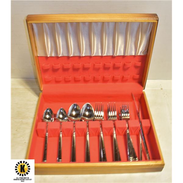 WOODEN CASE FILLED WITH ONEDA SILVERWARE