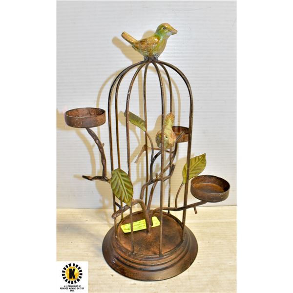 WROUGHT IRON BIRDHOUSE CANDLE HOLDER