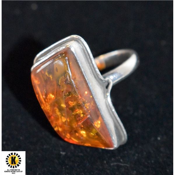 925 SILVER ESTATE BALTIC AMBER POLISH RING