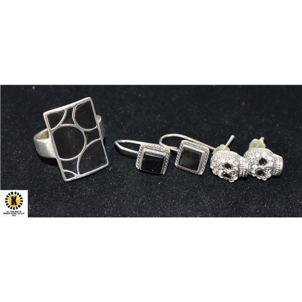 925 SILVER EARRINGS, SKULL EARRINGS& LARGE RING