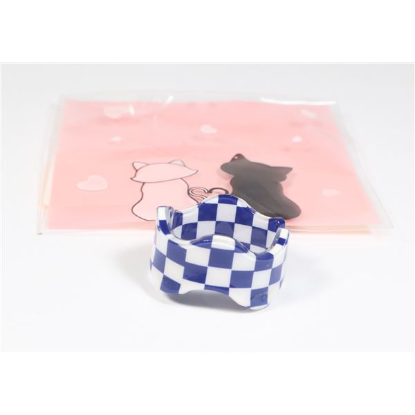 NEW BLUE CHECKER BOARD PLASTIC CUFF RING