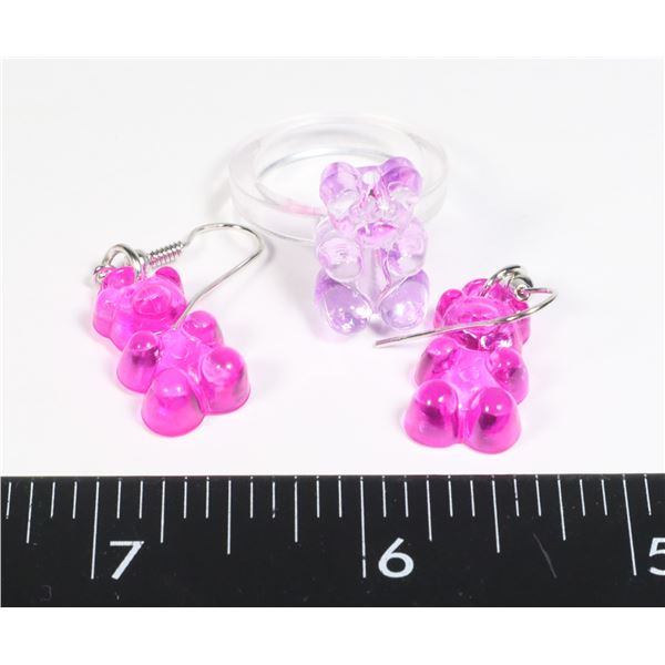 RING & (FUCHSIA) EARRING SET. RING SIZE 8 FASHION JEWELRY: NOT FLAVOURED OR EDIBLE