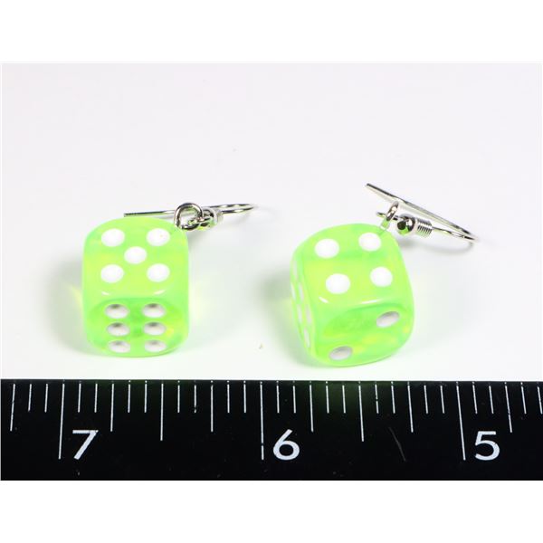 NEW LIME GREEN 4 SIDED DICE DROP EARRINGS