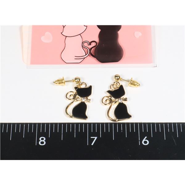 NEW CAT DROP EARRINGS RHINESTONE ON BOW