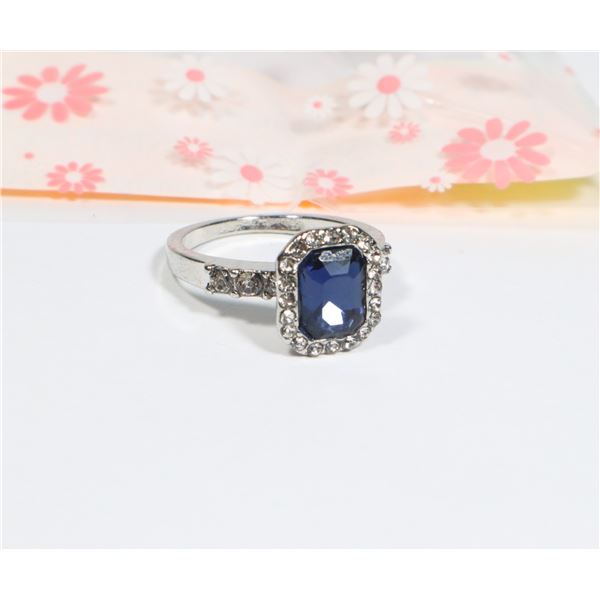 NEW SILVER TONE RHINESTONE SQUARE SHAPED RING