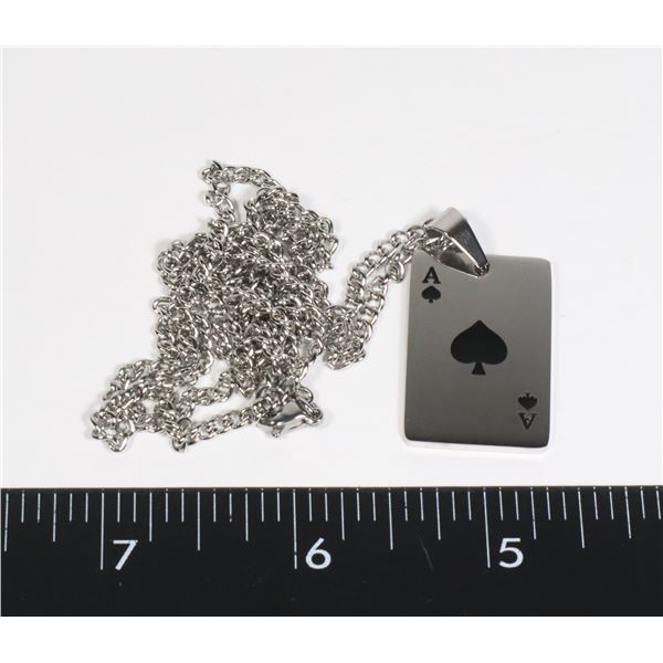 NEW ACE OF SPADES DOG TAG PENDANT WITH CHAIN