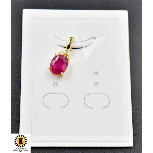#05-NATURAL RED RUBY 6X7.9 & PENDANT NECKLACE 16"