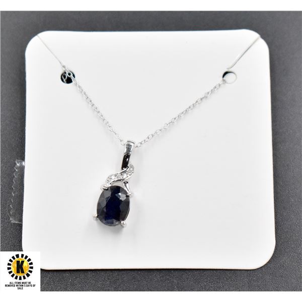 #39-NATURAL SAPPHIRE 6.3X 8.2 & CZ PENDANT NECKLA