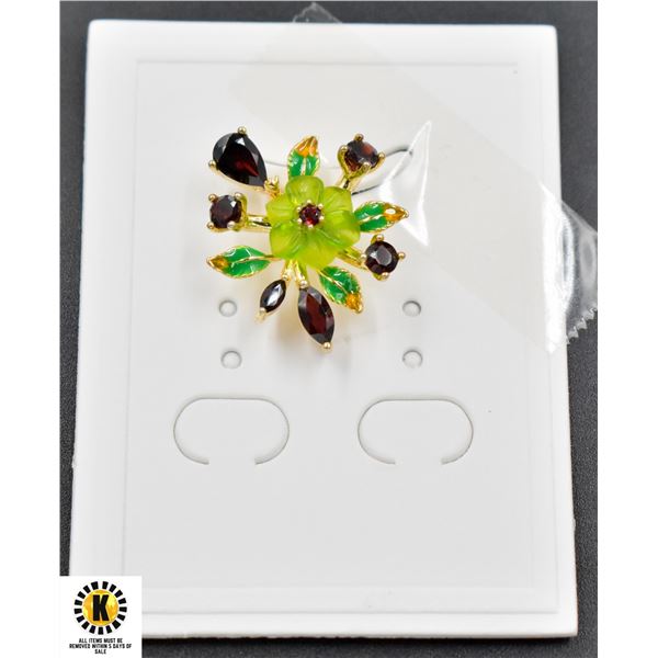 #42-NATURAL GREEN QUARTZ 8X9 & GARNET PENDANT