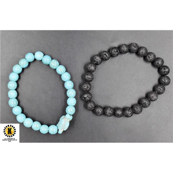 #115-NATURAL BLUE TURQUOISE, LAVA STONE BRACELET