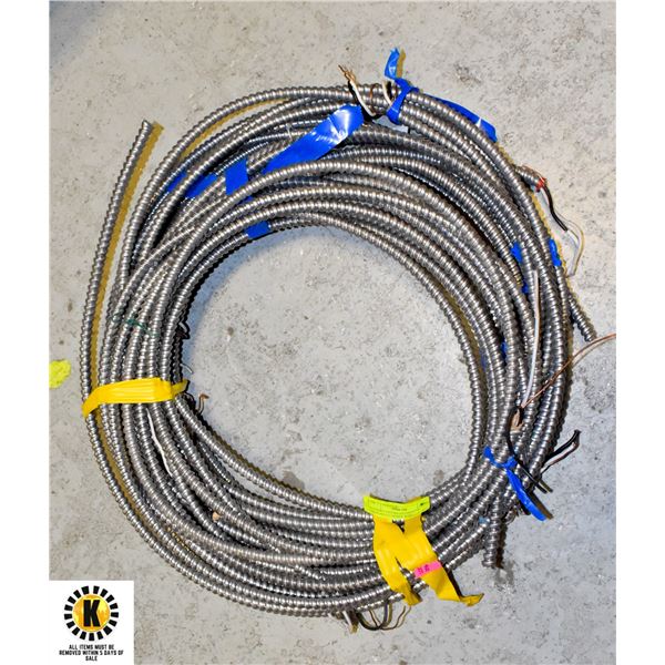 5 COILS 25', 11', 17' 19', 21', 21' (12 AWG) BX ALUMINUM ARMORED COPPER CABLE POSSIBLY 12/2 NO MARKINGS 2 WIRE + GROUND 11...