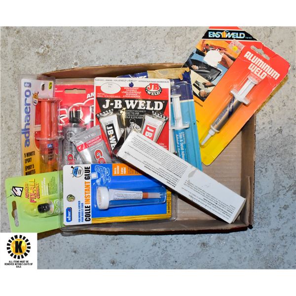 J-B WELD, MARINE GOOP, AUTO GOOP, ALUMINUM WELD, 3M WEATHER-STRIP ADHESIVE, TRIM + DETAIL ADHESIVE, INSTANT GLUE, EPOXY, FIX ALL CEMENT