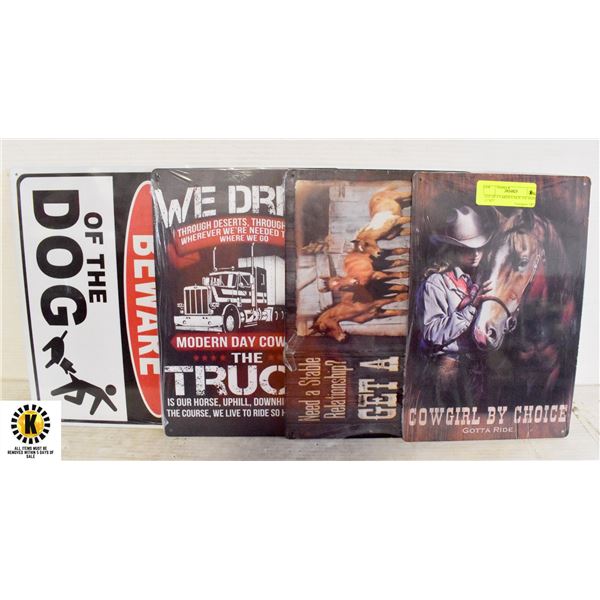 LOT OF 4 VARIOUS NEW TIN SIGNS 11"X7"