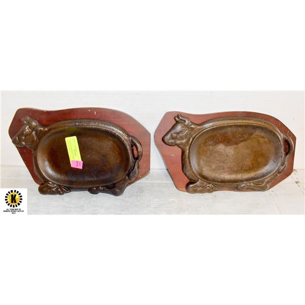 PAIR OF CAST IRON COWS WITH SERVING TRAYS