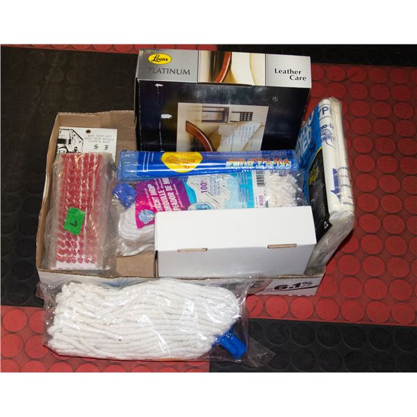NEW LEATHER CARE KIT, MOPS **SHIPPING NOT AVAILABLE** **ALL ITEMS MUST BE REMOVED BY 5PM MONDAY, SEPTEMBER 10, 2022. ALL REMAINING ITEMS WILL BE SUBJE