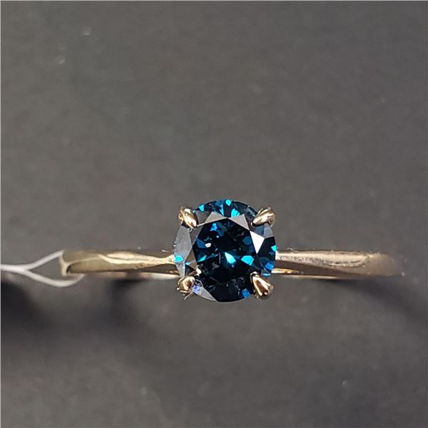 10K YELLOW GOLD DIAMOND (0.5CT,SI2,INTENSE BLUE TREATED) RING SIZE 7 WEIGHT 1.35G, MADE IN CANADA, APPRAISED RETAIL $2275**ALL ITEMS MUST BE REMOVED