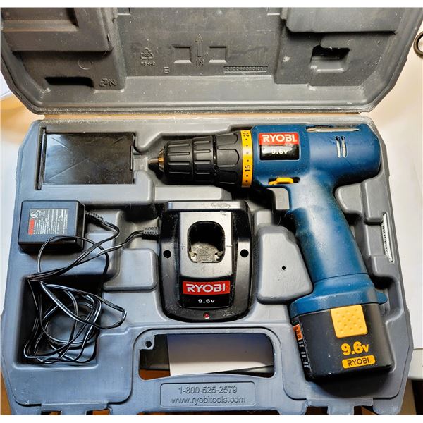 32) RYOBI CORDLESS 9.6 V DRILL AND CHARGER IN