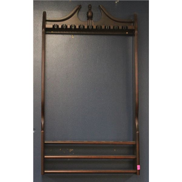 WOODEN 9 SLOT / 3 SHELF BILLIARD WALL RACK- DK BROWN 43" X 24"4048 - WOODEN 9 SLOT / 3 SHELF BILLIARD WALL RACK- DK BROWN 43" X 24"