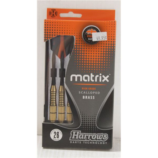 HARROWS MATRIX HIGH GRADE SCALLOPED BRASS 26 GRAM STEEL TIP DART SET