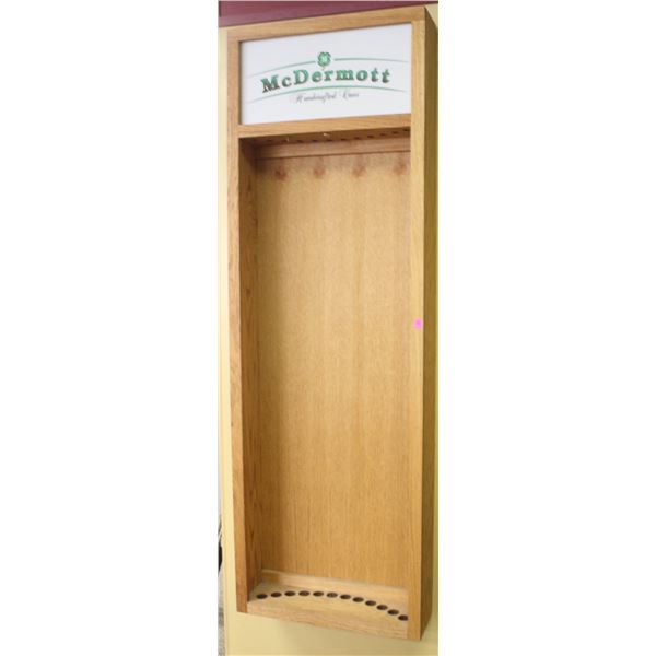 MC DERMOTT 12 SLOT WALL MOUNTED POOL CUE DISPLAY CABINET 6FT X 4FT