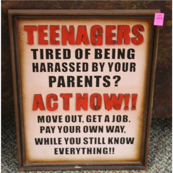 "TEENAGERS... ACT NOW!" WALL HANGING 16" X 12"