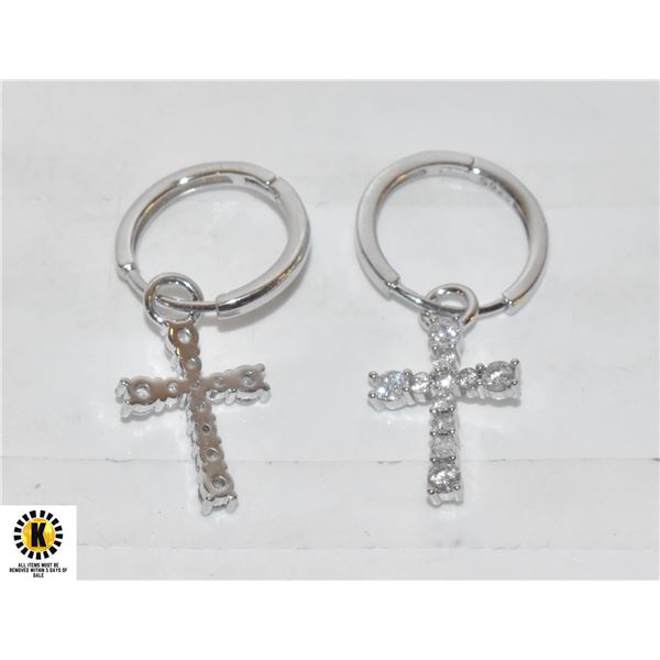 NEW .925 SILVER CROSS LEVER BACK EARRINGS