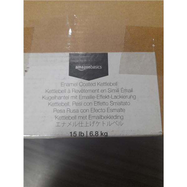 NEW AMZ BASICS 15LB BLACK ENAMEL COATED KETTLEBELL1601 - NEW AMZ BASICS 15LB BLACK ENAMEL COATED KETTLEBELL