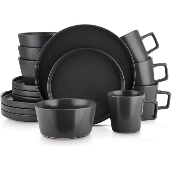 NEW STONE+LAIN 16 PIECE BLACK STONEWARE DINNERWARE