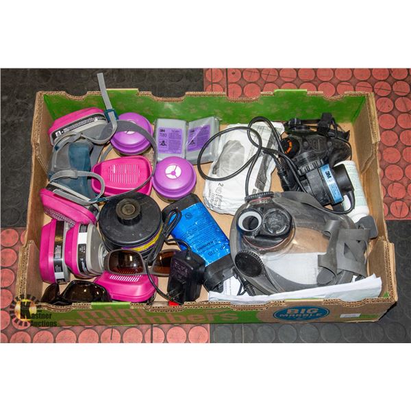 POWERED AIR PURIFYING RESPIRATOR WITH NEW FILTERS, BATTERY PACK, 3M DUAL FILTER RESPIRATOR PLUS NEW FILTERS, LENS CLEANER, ETC.