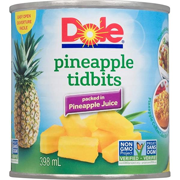 6 NEW CANS OF DOLE PINEAPPLE TIDBITS - 398ML PER