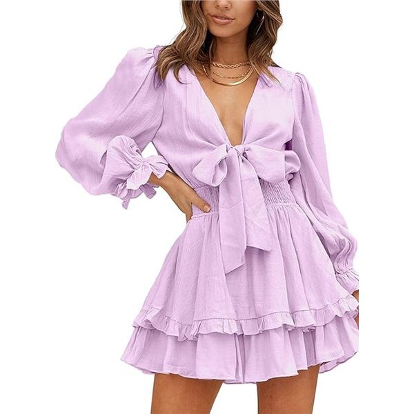 AILUNSNIKA KNOT FRONT DEEP V RUFFLE HEM FLOWY