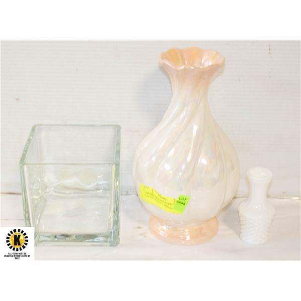CERAMIC PEACH COLORED VASE W/SMALL WHITE VASE