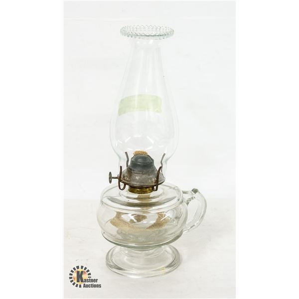 ANTIQUE JAPANESE OIL LAMP W/GLASS CHIMNEY