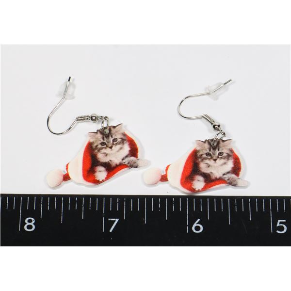 NEW KITTIES IN SANTA HATS DROP EARRINGS
