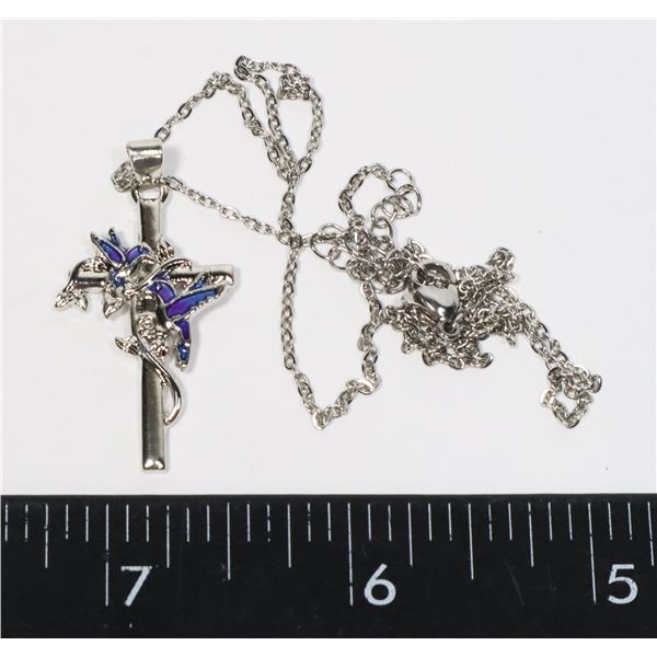 NEW SILVER TONE CROSS WITH DOVES PENDANT AND CHAIN