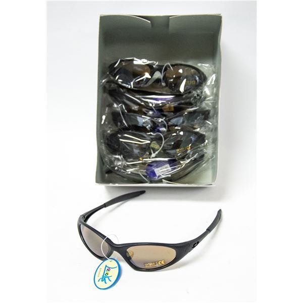 12 PAIR OF BLACK WITH COPPER LENS SPORT SUNGLASSES