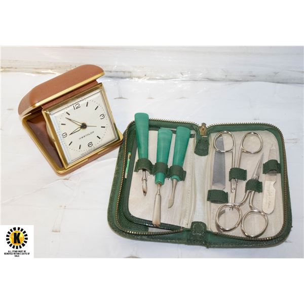 VTG SHEFFIELD MANICURE SET/WESTCLOX TRAVEL CLOCK