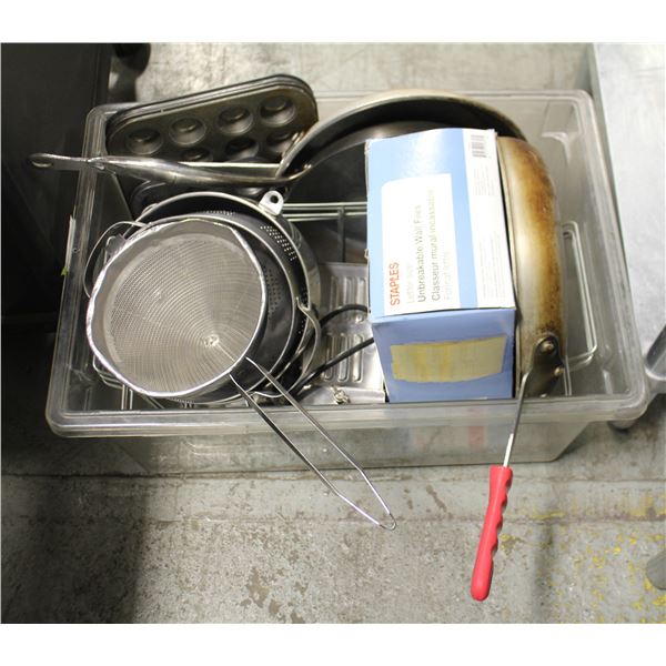 BIN OF ASSORTED PANS/ COOKWARE & MISC7312 - BIN OF ASSORTED PANS/ COOKWARE & MISC