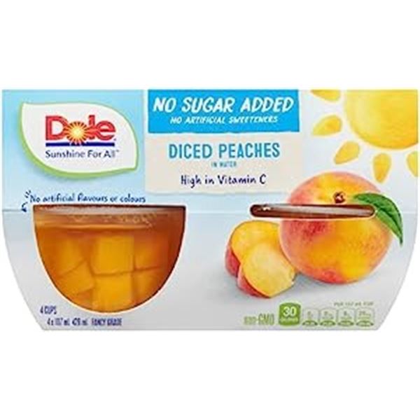 NEW 2 X DOLE DICED PEACHES IN WATER 4 PACKS