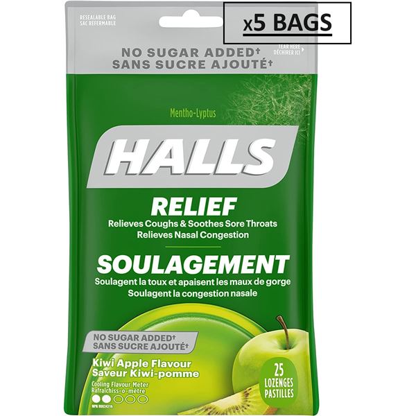 NEW 5 PACKS OF HALLS MENTHO-LYPTUS RELIEF LOZENGES
