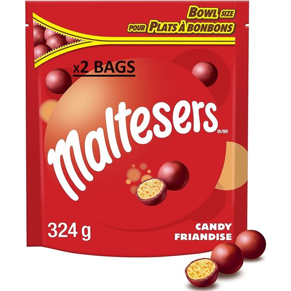 NEW 2 X 324G BAGS OF MALTESERS, RESEALABLE