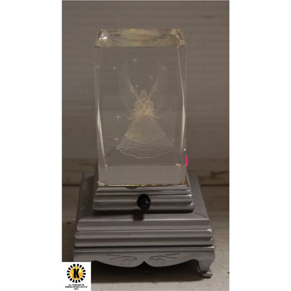 LAZER CUT CRYSTAL ANGEL WITH LED LIGHT STAND