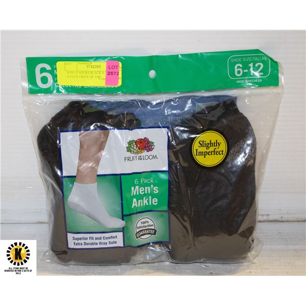 ANKLE SOCKS BLACK 6-12 SIZE 6-PACK FRUIT OF THE